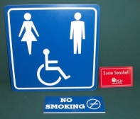 Need a sign? We can hook you up! Etched on 1/8" plastic. Many, many colors